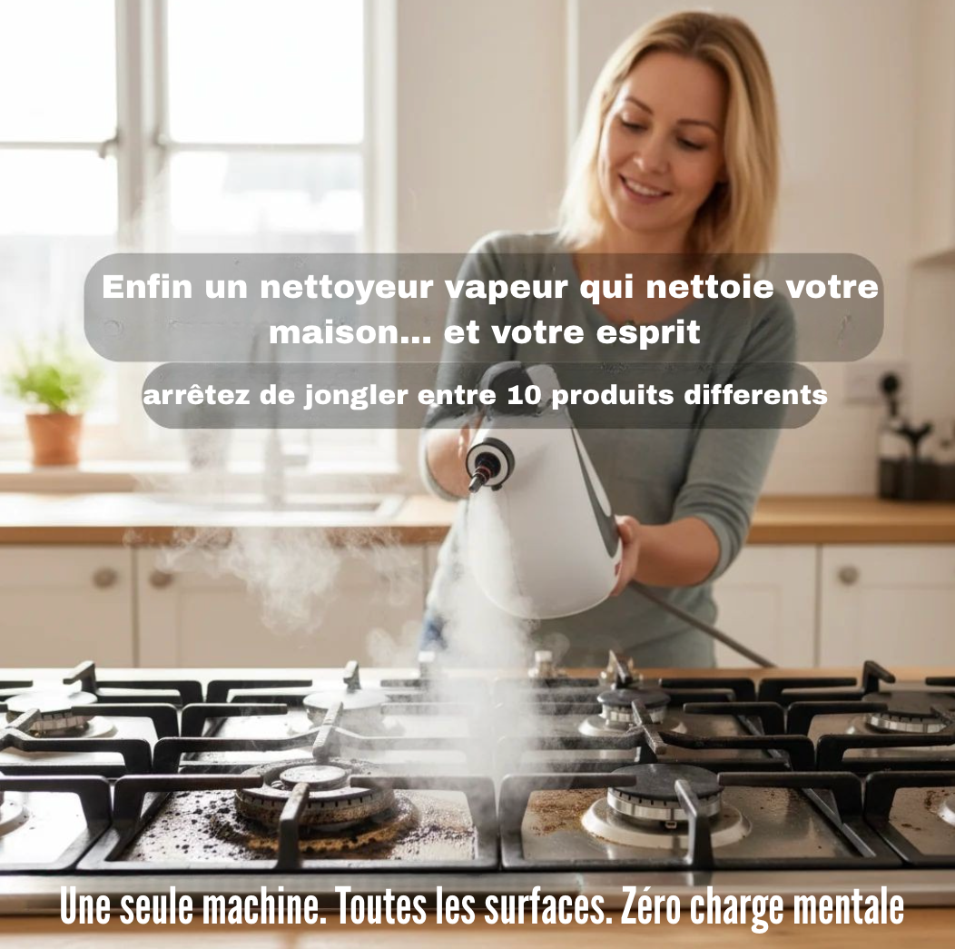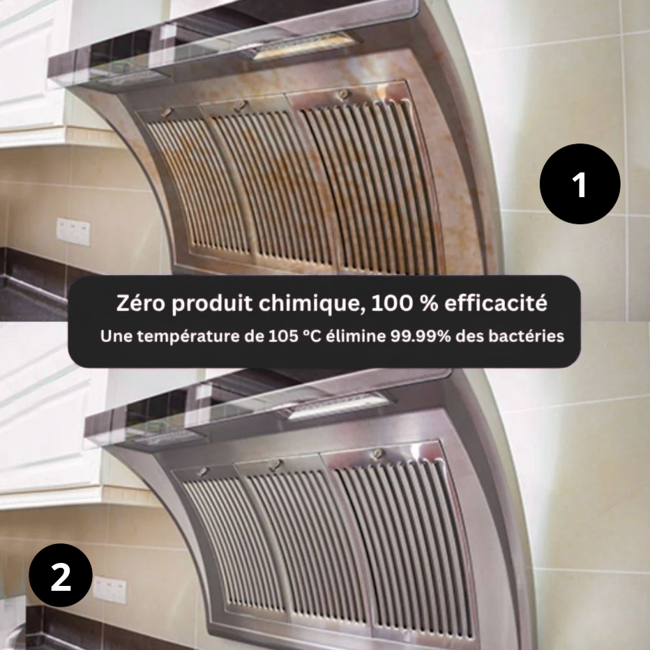 3,5 bars de vapeur haute pression. Assez puissant pour désincruster 10 ans de saleté en 3 secondes. La vapeur à 110°C combinée à 1050 watts de puissance pénètre instantanément les graisses les plus tenaces, les joints les plus noirs, les taches les plus incrustées. Sans frotter. Sans forcer. Sans transpirer. Système de sécurité intégré contre la surpression pour une utilisation sans risque.